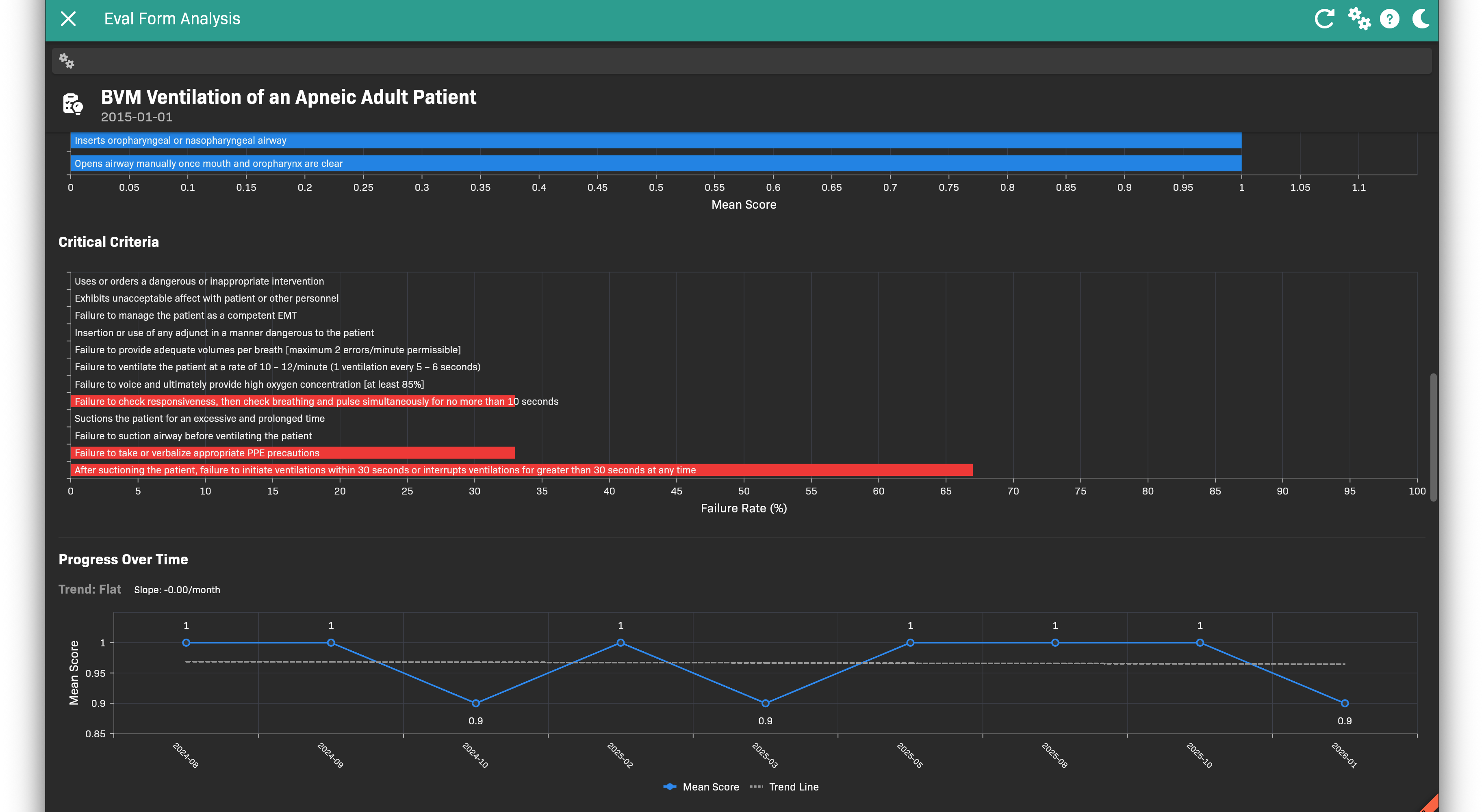 Section titled “Review the indicators”Use the report to identify patterns such as missing data, inconsistent scoring, or criteria that frequently trigger critical failures. Update the form in Eval Studio if adjustments are needed.
