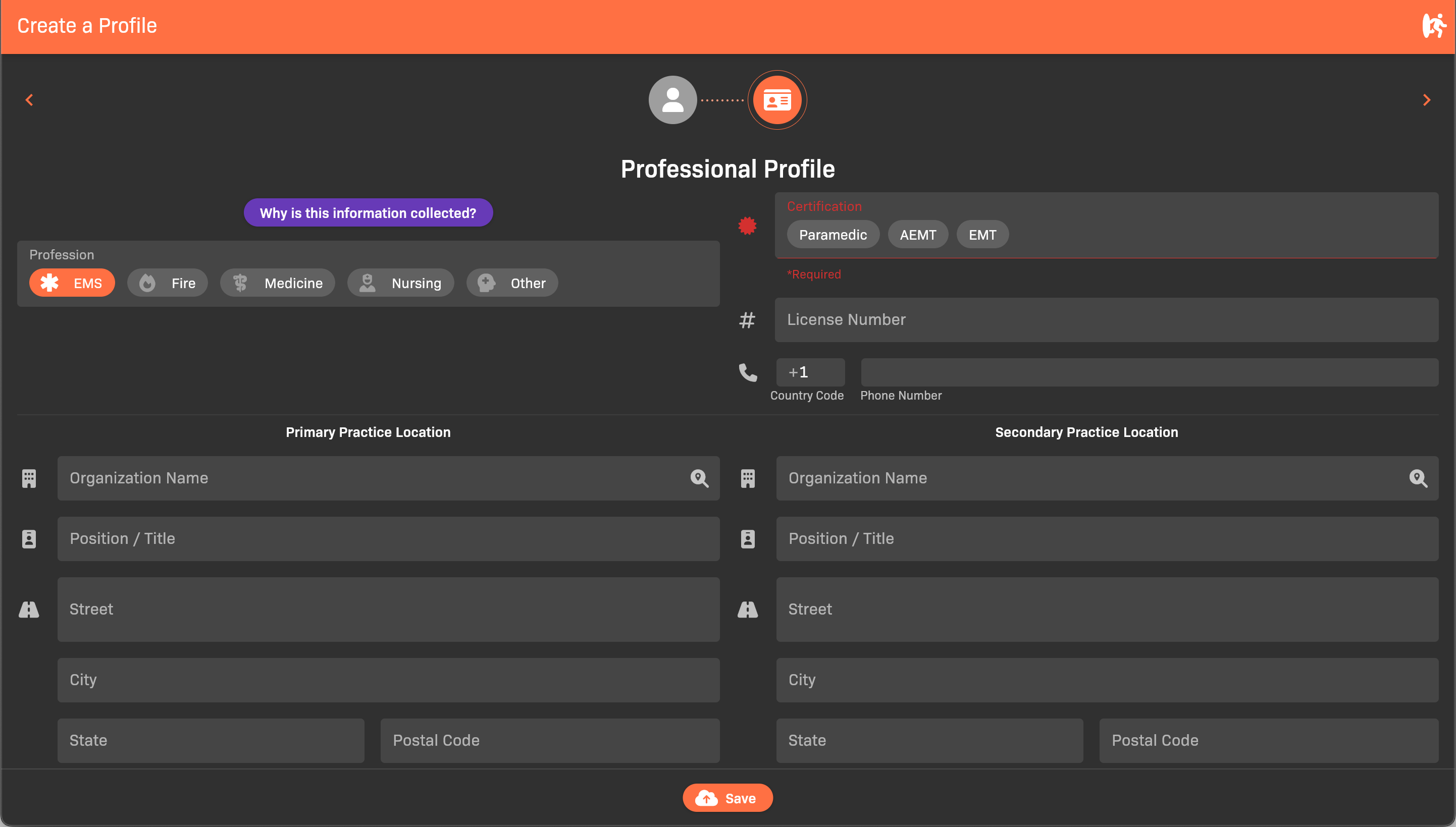 Complete your professional profile information.