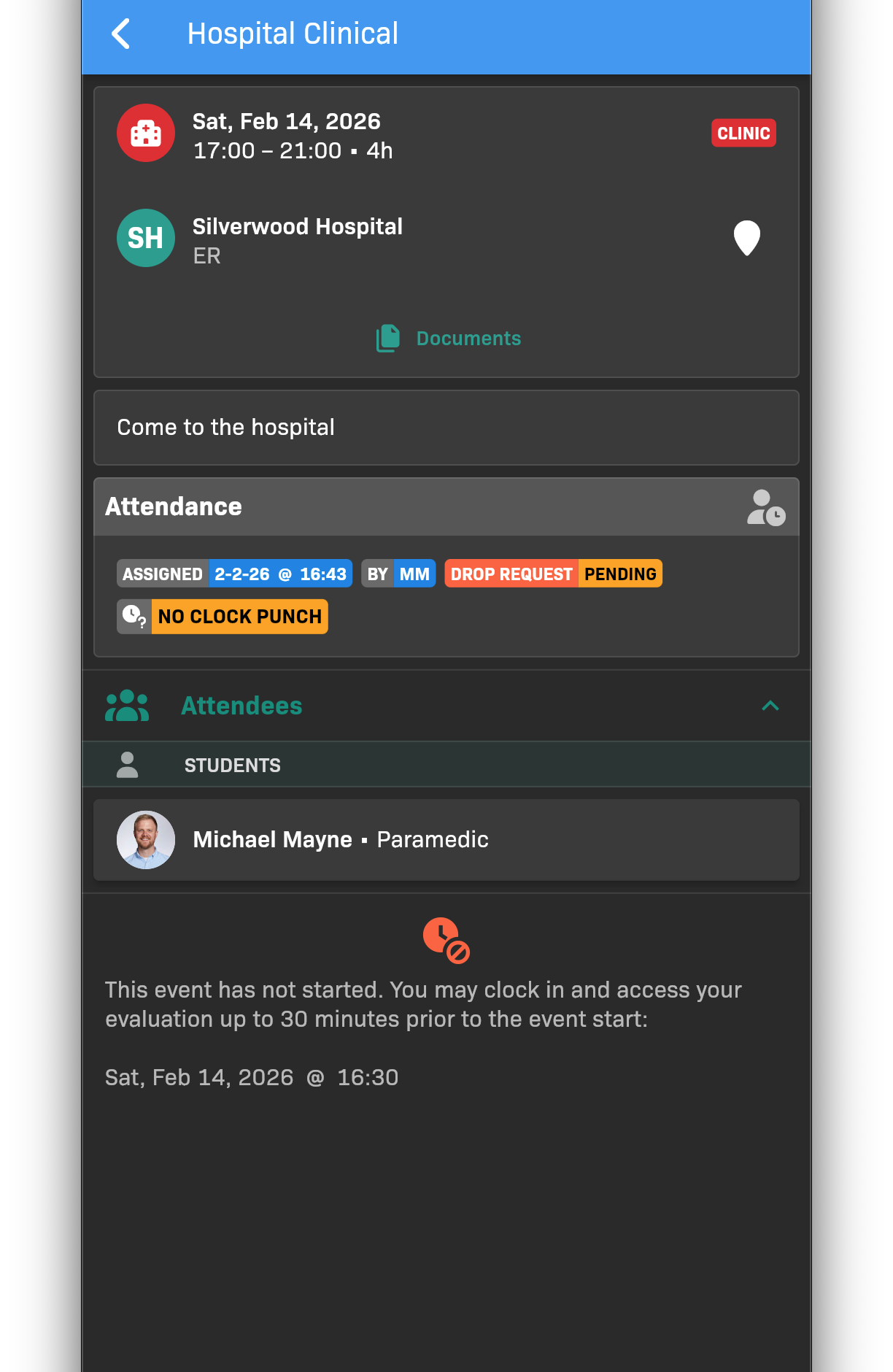 Section titled “Check request status”After you submit a request, the event card shows the request status. You will also receive a push notification and email when your request is approved or denied.